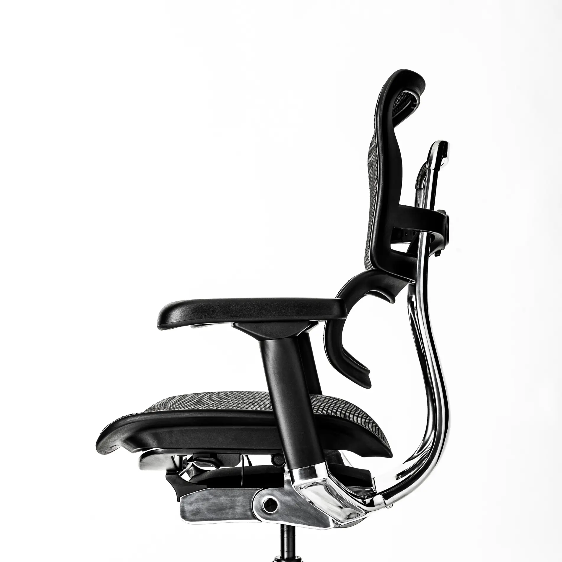 エルゴヒューマンチェアは、デスクワーク時に負担のかかりやすい腰へのサポートに重点を置き、人間工学を基にして開発・設計された多機能チェアです。最大の特徴である”独立式ランバーサポート”は、ユーザーの体格・姿勢に応じて自動でポジションが調節され、着座時は常に腰をサポートし快適な座りを維持できるように開発されました。Ergohumanでは2005年の発売以来、お客様からのお声を元に操作性・組み立てやすさ・耐久性などより永く快適で安全にご使用いただけるよう進化し続けています。
