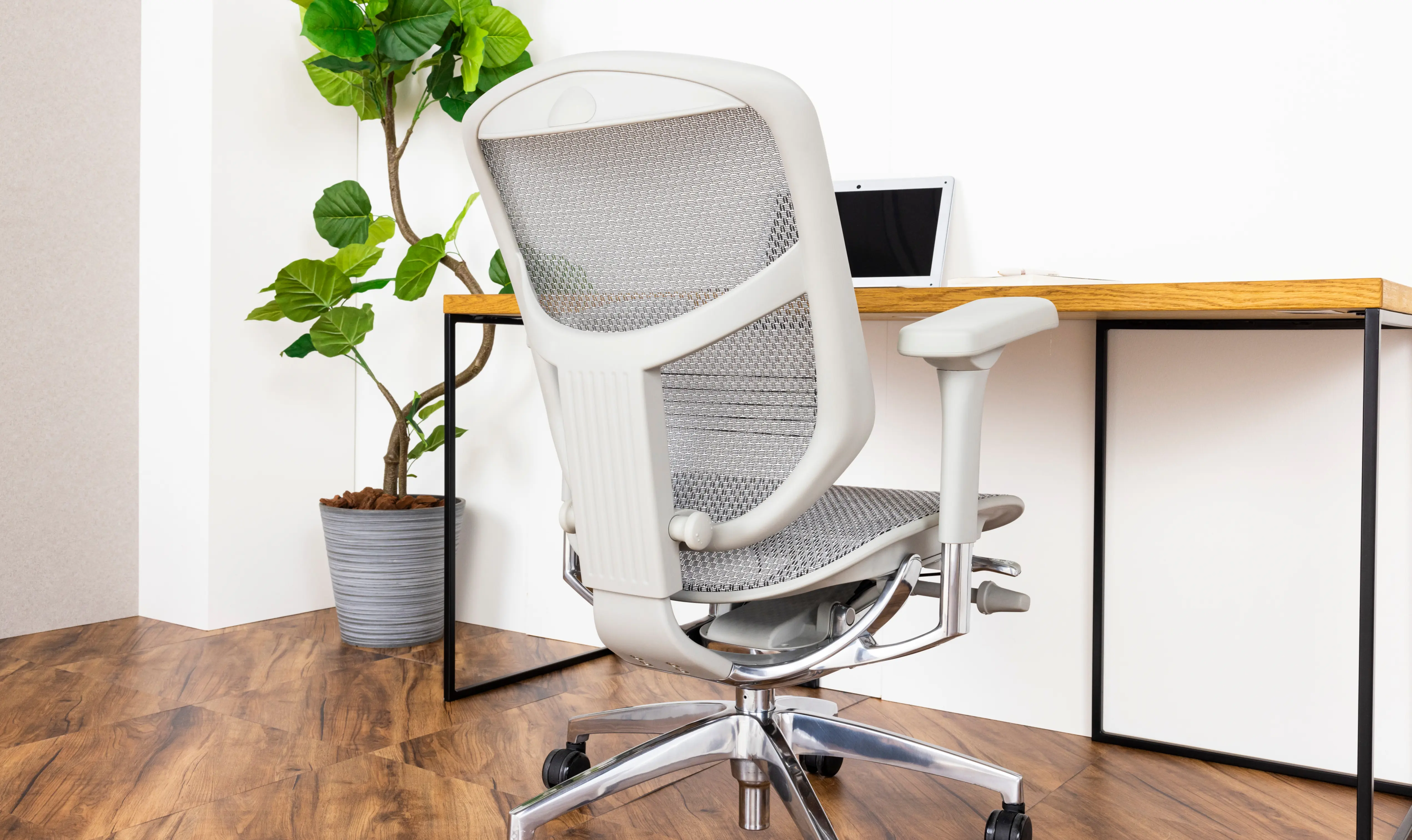 着座した時に背中全体をランバーサポート一体型のバックレストが支えてくれる、デスクワークをする全てのかたにおすすめのチェアです。